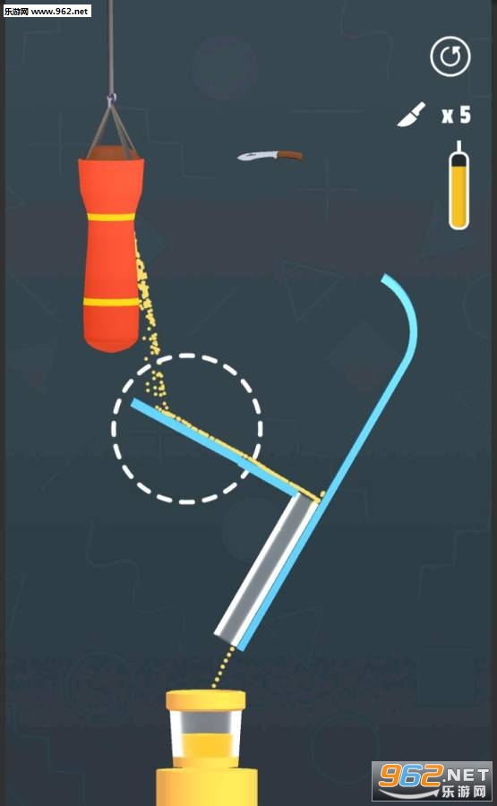 《我穿沙袋贼6官方版》是一款画面清新的戳穿沙袋的闯关休闲手游,游戏中玩家的任务就是利用飞刀来戳穿上面悬挂的沙袋,让沙子慢慢的落下来,最后落入到杯子中,注意调整下面的一些机关让沙子能够全部的落入杯子中,杯子装满沙子就可以挑战下一关了。