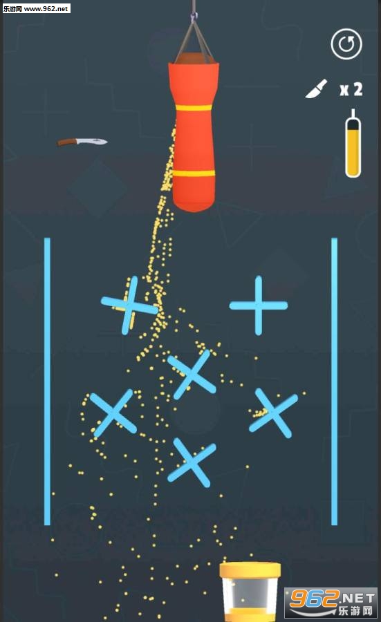 趣味的闯关游戏,游戏玩法简单,点击屏幕发射飞镖等武器来戳穿沙袋让沙子落入下面的玻璃杯中,有着丰富的场景可以挑战,喜欢的朋友可以下载试试。