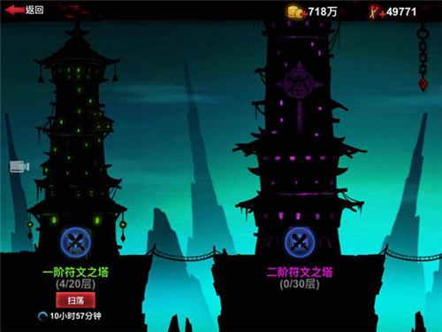 符文之塔:四阶爬塔副本(20/30/40/100层),产出核心养成材料——符文,通关第4层即可开启扫荡功能,每日最多购买7次扫荡机会。