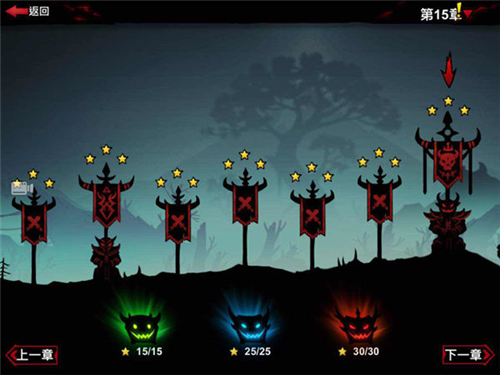 剧情副本·试炼之地:共15章150关,通关可获星星兑换宝箱,三星评价需高血量无伤通关。
