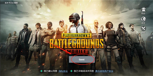 1、在本站下载PUBG手游美服安装包,打开应用后点击主界面【Guest】按钮;