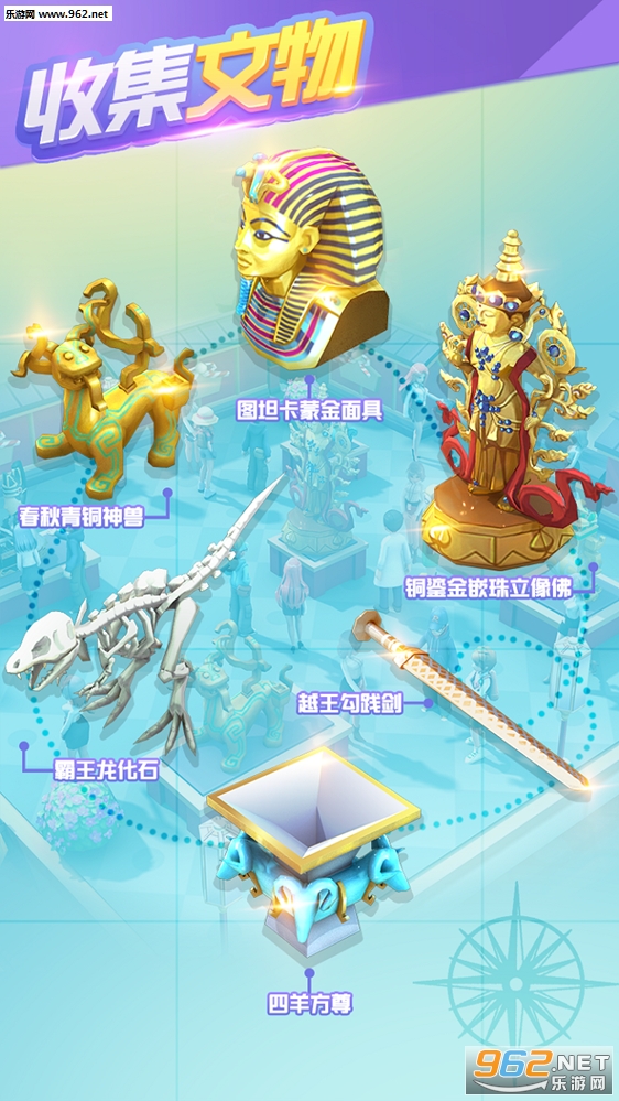 《大中华博物馆》是一款集合了Roguelike冒险考古、文物收集、博物馆放置模拟经营和装扮等玩法的休闲游戏。我们扮演大中华博物馆的一名考古队员,深入中华各地去探险、考古、挖掘埋藏在地下的文物和珍宝,这些珍宝将被我们带回大中华博物馆向游客们展示;通过我们的建设,大中华博物馆将不断涌现出各种主题馆:中华青铜器馆、兵马俑馆、中华冷兵器馆、中华恐龙馆等等;通过装修让自己的博物更个性;通过考试答题、竞技鉴宝、竞价拍卖来提升自己的等级,最终,让自己成为展馆最多,文物价值最高,藏品最多的博物馆首席馆长。