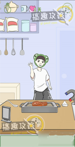 游戏并非传统模拟经营,而是以脑力解谜为核心机制。每一关都是一次内容创作”挑战,你需要观察场景、收集道具、触发逻辑链,完成看似荒诞却暗含现实隐喻的任务。从撒盐烤肉到修理泡面机,每个操作都考验你的洞察力与联想能力。