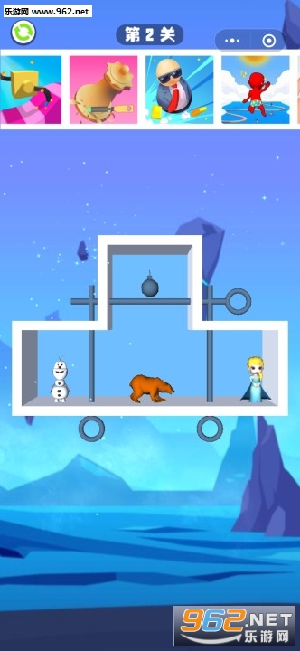 1、闯关模式,每个关卡随机出现不同的钥匙,将女王、雪人和危险隔离开。