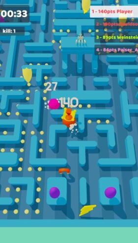 迷宫大作战3D游戏安卓版中会有极其有趣的玩法,在这里你将面临的是超棒的战斗,想办法将敌人吞噬掉,获得更多的优势,比赛场地很大,同时可以拥有8名玩家进入变身,之后分成4个队伍,到比赛结束后,哪个队伍的分数更好,就会获得胜利,尽可能多的吃到豆子,这样才能快速的成长起来。
