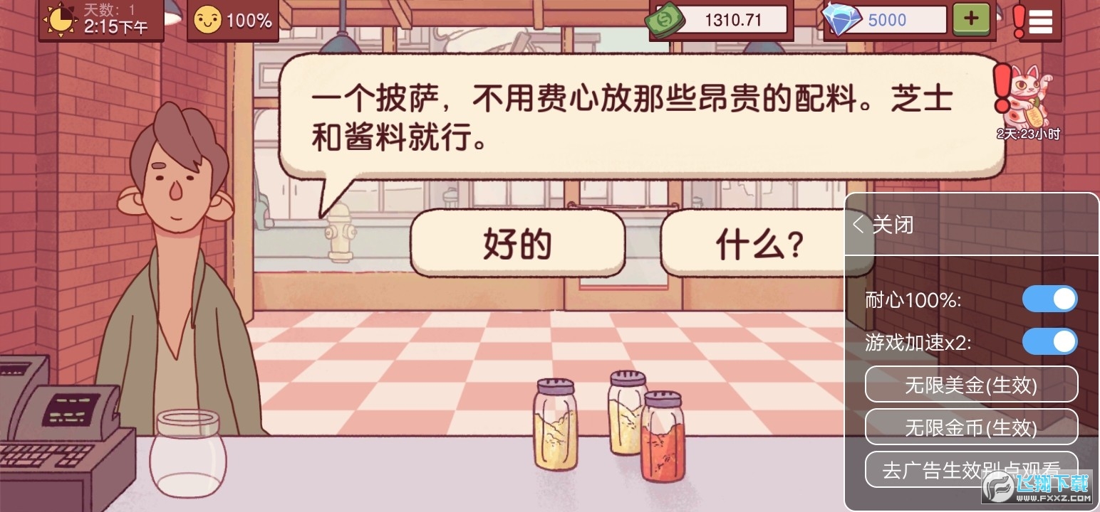 可口的披萨美味的披萨无限钻石破解版是一款卡通风格的模拟经营类手游,游戏里玩家们可以经营一家披萨店,在游戏里自由的选择不同的配料来制作披萨,满足不同性格的客人病赚取钞票,不断的升级自己的烹饪设备来制作更多的披萨,喜欢这款游戏的小伙伴快来下载最新的破解版吧!