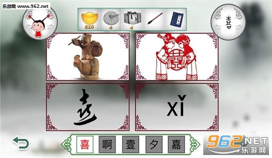 1、每一关提供4个图片线索, 追本溯源,生动展示 “为什么这个字这么写”;