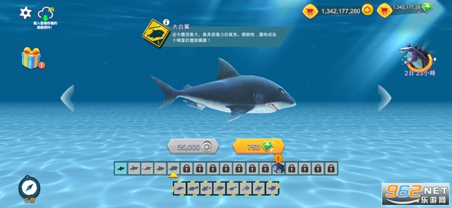 逐步解锁更多强大的鲨鱼种类,包括灰鲭鲨、锤头鲨、虎鲨及终极杀手大白鲨等。