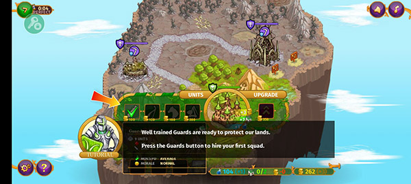 第五关:优先建造三类基础房屋,快速升至两个5级防御塔。上方塔保留一名弓箭手防守,用盾兵+弓兵配合魔法攻下左下角塔,随后集中2-3队纯骑兵突破防线即可。