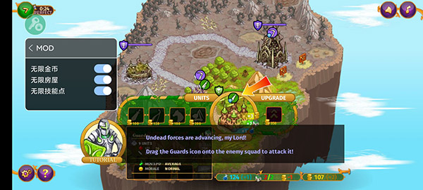 第八关:开局用85金币单位直冲基地下方城堡(可承受雷击伤害,若损失过重可重开);随后使用杀虫”技能持续进攻直至占领;得手后全力造坦克(原基地可放弃),利用坦克抗线并积攒兵力,最终带队攻下魔法塔,局势将全面逆转。