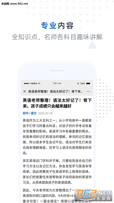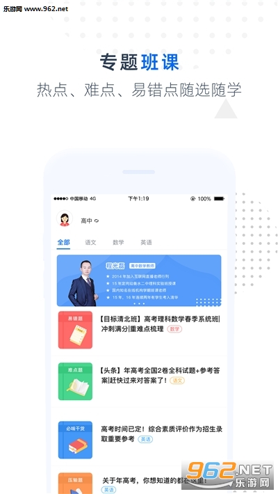【专业教学内容】初中、高中主课程全知识点详解,通过学霸级名师各科目的趣味讲解,加深理解,有效提高学习成绩。