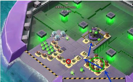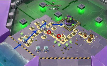 2、先炸掉小加农炮,然后让胖妹从右侧推进,清除狙击塔后直扑基地,整体难度不大。
