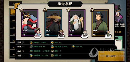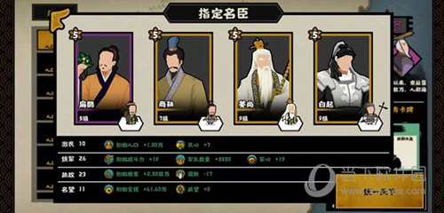 2、这一套搭配的名臣是扁鹊,商鞅,姜尚,白起,商鞅可以用张仪代替,这套搭配几乎有着无可匹敌的军事能力,前期就可以获得极高的。
