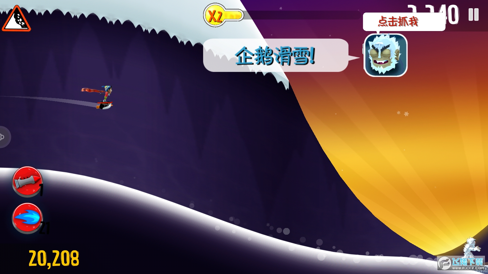 千万玩家五星好评,跑酷游戏人气神作,史上最惊险刺激的另类跑酷游戏,超炫视觉体验,真实雪崩大逃亡。突如其来的雪崩打扰了小摔哥的美梦,他要赶在被大雪埋没前逃离困境!踩上滑雪板,夺命竞速大战就此拉开序幕。逃命路上要努力加速躲避障碍,最厉害的是要学会和一样在慌忙逃命的动物们合作逃生!企鹅、雪怪和老鹰,全是靠谱的好伙伴。皑皑雪山,蔚蓝天空,冲上云霄,穿梭山洞,在惊险刺激的大冒险中体验爽快的滑雪感受吧!