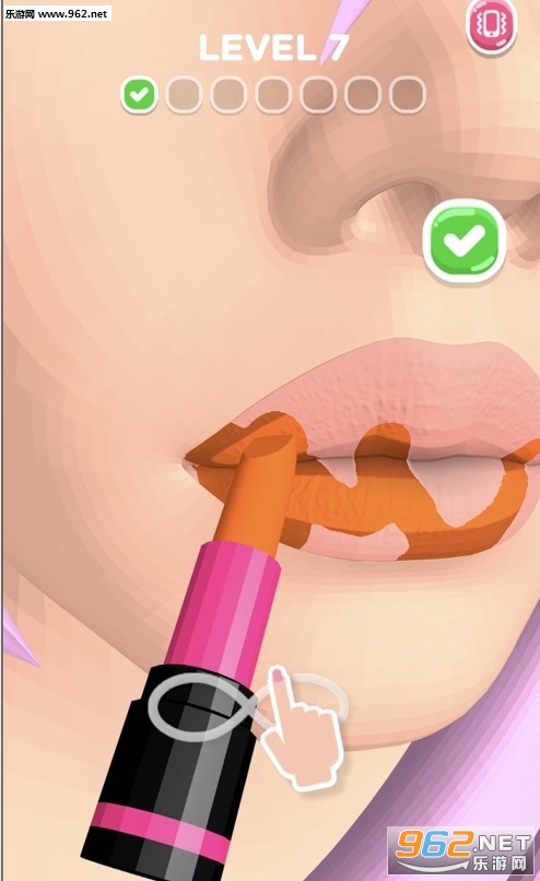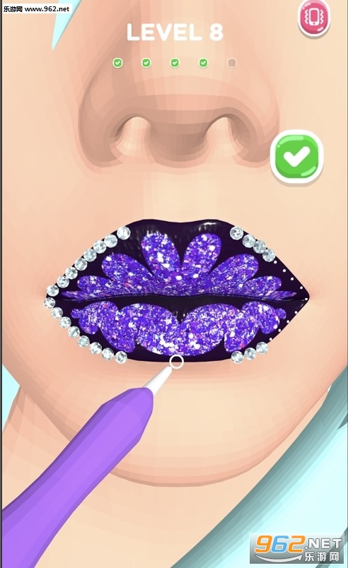 非常有创意的一款涂口红类的休闲游戏,玩家在游戏中可以选择自己喜欢的颜色和元素对嘴唇进行点缀,还有很多独特的亮片等效果,玩起来很过瘾。