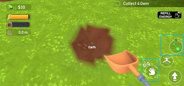 2、你可以选择手动控制挖掘进度,也可以切换为自动挖掘模式来节省操作时间。
