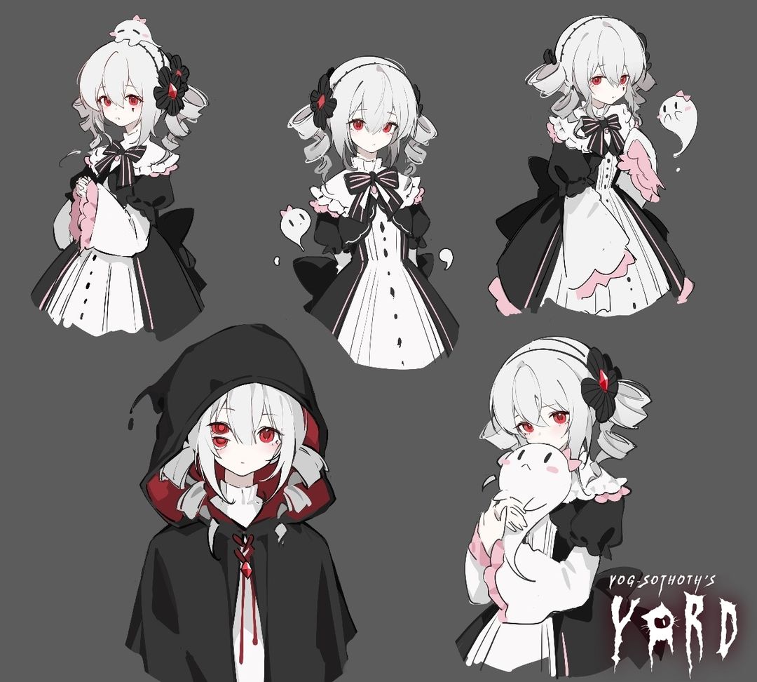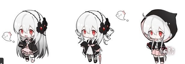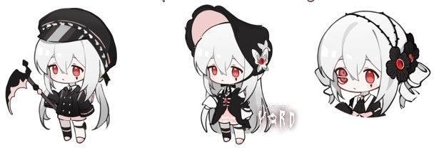 说起来,对特莉波卡的设计是最费精神的呢!首先是死神服和常服的分别设计,最初并没想要换装,而是想要保持死神的特质,因此加白酱尝试了很多种不同的发型和服设: