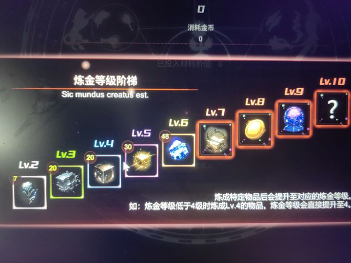 4.不需要按照配方一个等级一个等级炼制,根据小提示2搭配价值30的炼金材料进行自由炼制可以直接炼金到等级5的炼金等级。