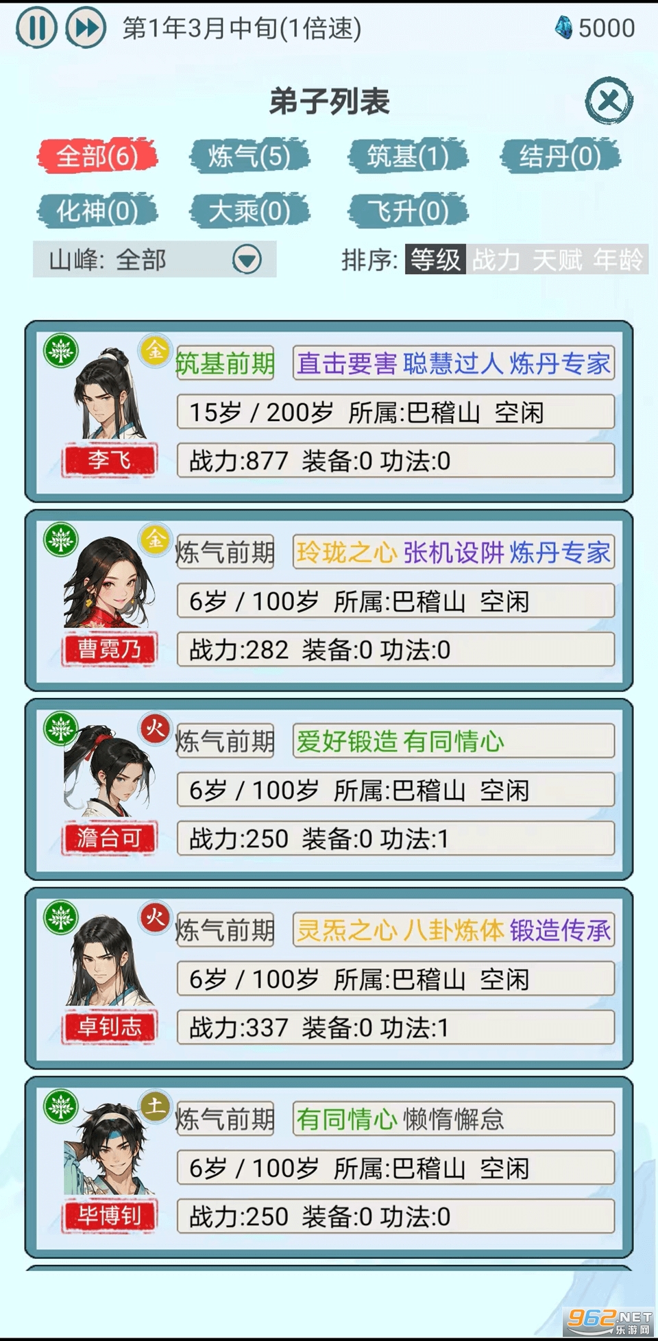5. 人员培养 — 面对门下几十数百甚至过千的弟子,你毕竟精力有限很难每个人都手把手培养,如何恰到好处地进行传功或洗髓帮助一些潜力股早日实现飞升也不是一件简单的事情,另外你也可以对一些看得上的弟子设置职责委以重任。