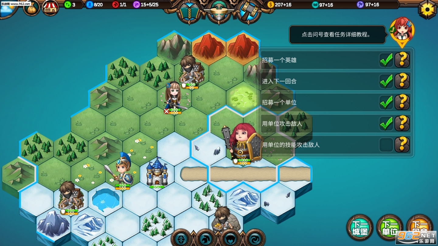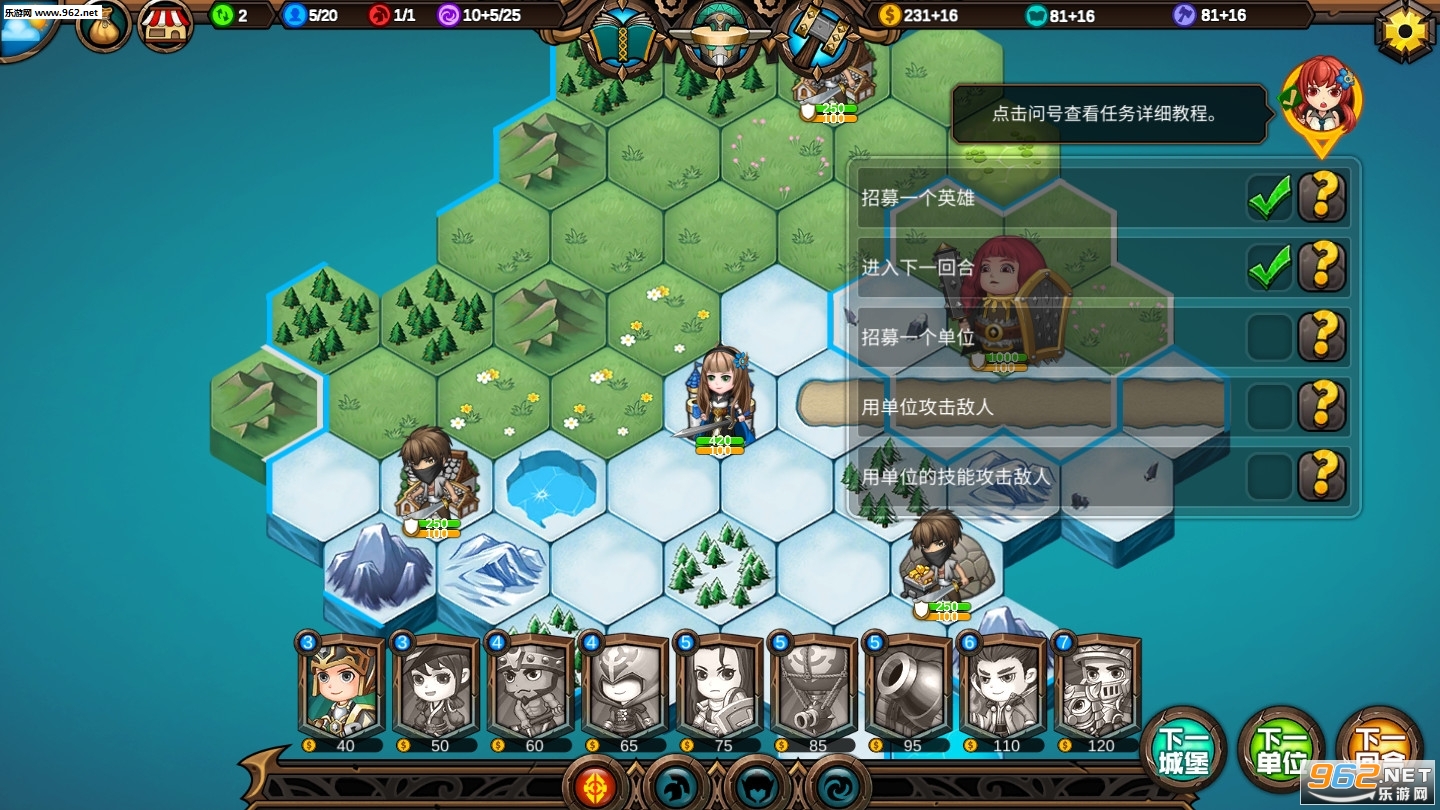 英雄是你军团的核心,每个军团拥有3个独特的初始英雄,你也通过知识卡牌升级将一些单位晋升成为英雄。