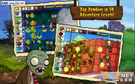 多达50个的冒险方式关卡设定,从白日到夜晚,从房顶到游泳池,场景变化多样!