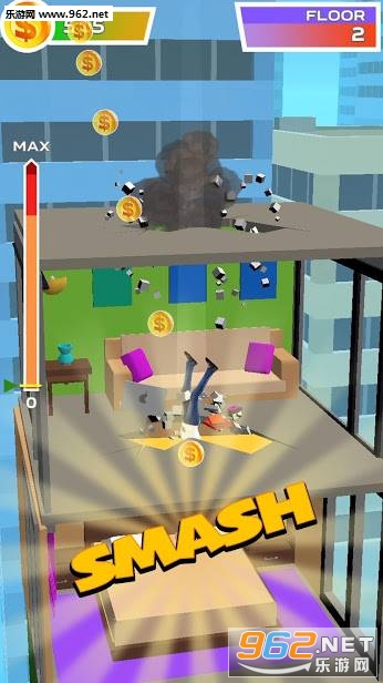 升级您的跳跃,头盔和速度以获得最佳结果。更好的升级,可能会破坏更多的楼层。