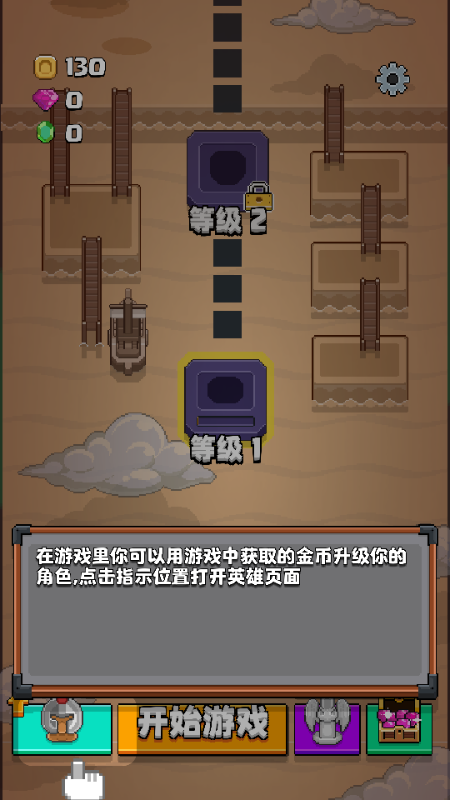 9、在游戏里你可以用游戏中获取的金币升级你的角色,点击指示位置打开英雄页面