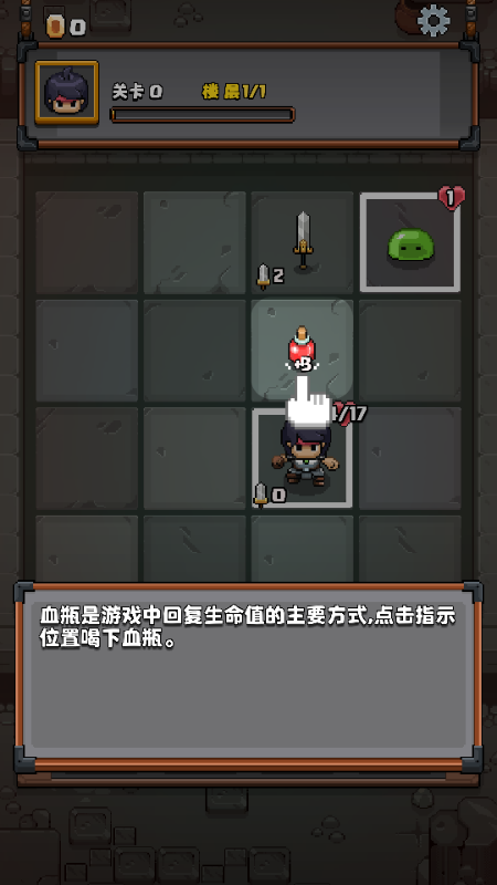 5、血瓶是游戏中回复生命值的主要方式,点击指示位置喝下血瓶。