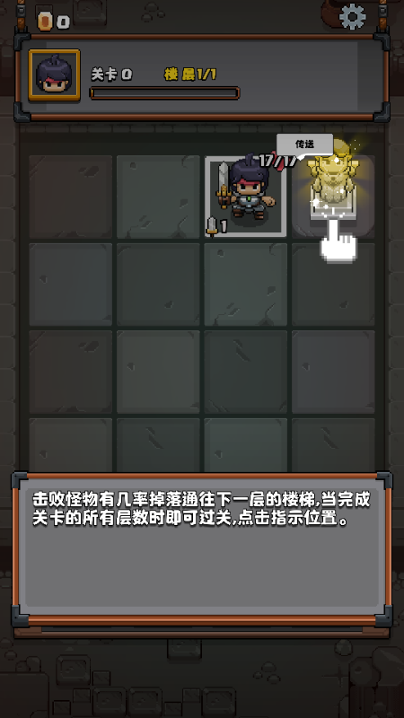 8、击败怪物有几率掉落通往下一层的楼梯,当完成关卡的所有层数时即可过关,点击指示位置。