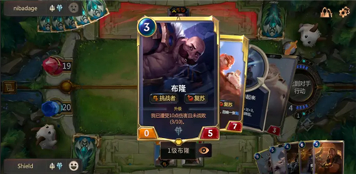 以人气英雄盖伦为例,其卡牌左上角蓝色数字代表5点法力消耗,左下角橙色数值为攻击力(5),右下角红色数值为生命值(5)。卡面下方描述其关键词复苏”——当满足条件(如攻击两次)后,盖伦即可升级,获得全新身材与更强力技能,同时其关联的衍生牌也会同步强化。不同英雄拥有截然不同的升级路径,例如布隆需承受10点伤害而不死亡才能完成进化,极大丰富了卡组构建思路。
