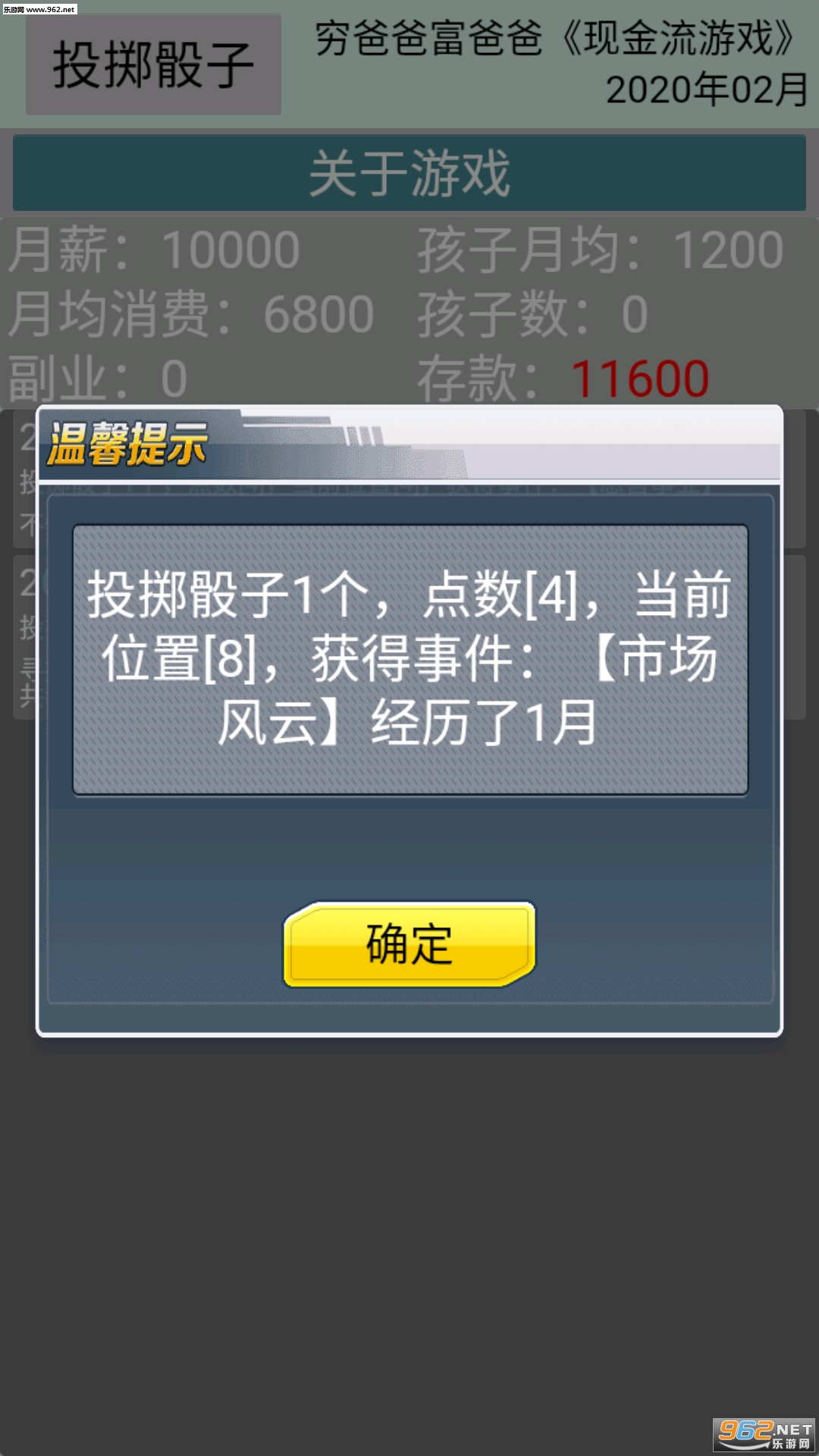 这是一款需要一定策略的文字模拟游戏,也是一款经典的文字经营类游戏,通过投掷骰子来判定获得的事件,决定十分完成事件将会影响到后续的发展,还是很有趣的,喜欢的亲们赶紧下载吧。