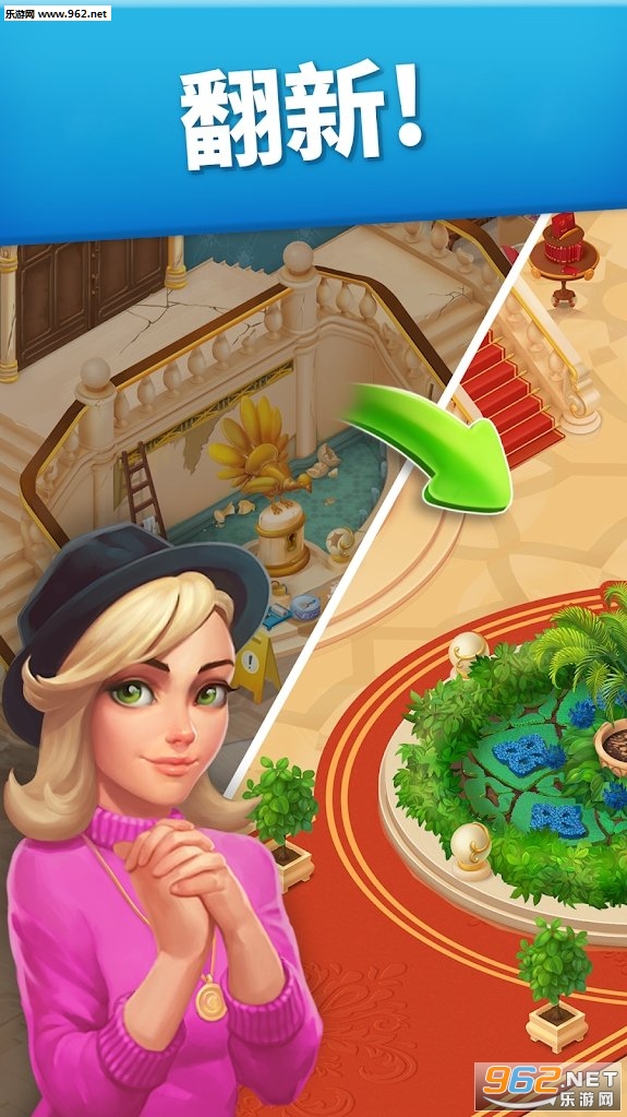 您需要将一座破旧的乡村庄园改造成您梦想中的家庭旅舍。通过进行三消游戏来清理瓦砾,在重建庄园使其重现昔日辉煌期间,尽情发挥您的想象力吧! 与Family Hotel幕后的欢喜冤家艾米莉和麦克斯一起合作。当这两位经理初次见面时,两人根本合不来,似乎没法一起完成复兴旅店的大计。但当他们联手合作之后,却发现彼此之间存在着许多共同点。 他们联手合作,一起建造新房间,添置家具,进行个人化的装潢。你可以替换掉破旧的喷泉,添加独特的新装潢,让旅馆做好准备,迎接八方来客。您可以完成他们发布的任务,获得额外奖励!