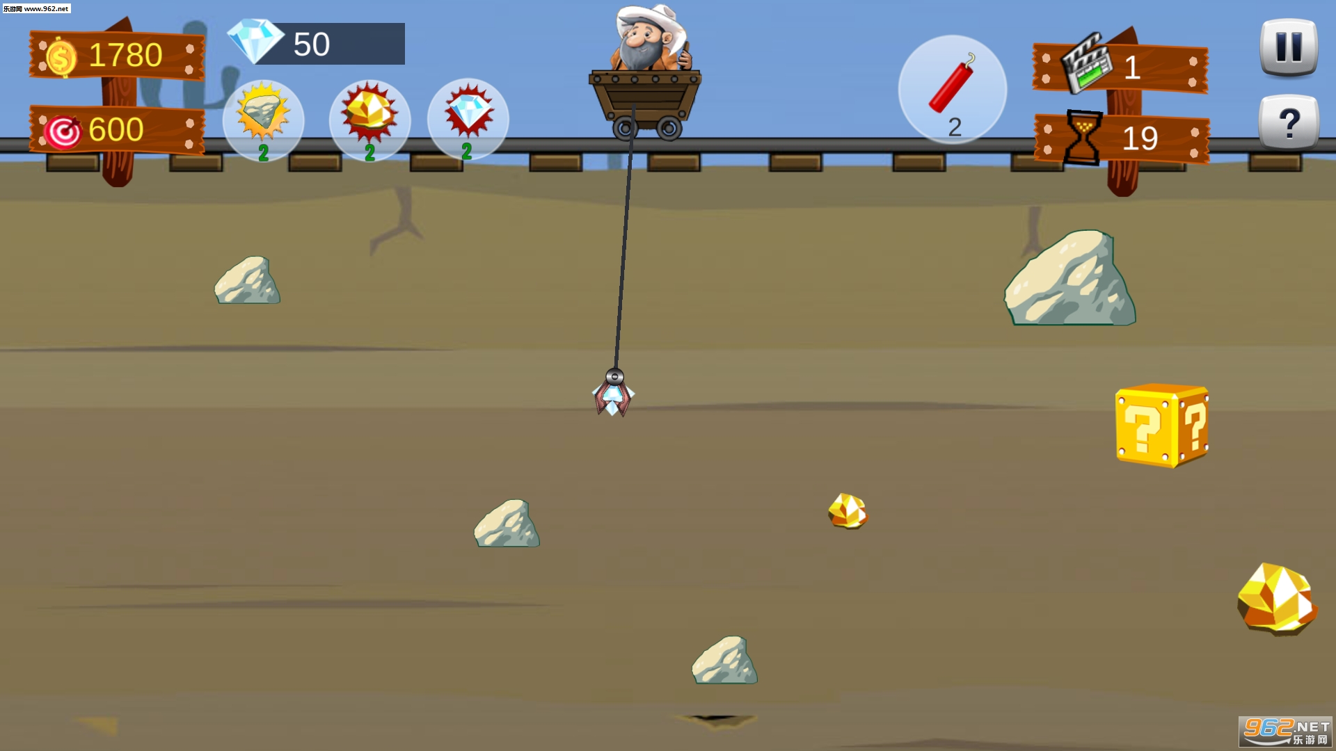 游戏操作非常简单,在钩子摇摆的过程中,瞄准金子,点击屏幕时即会释放出钩子去抓取金子。