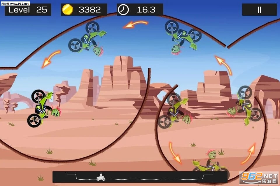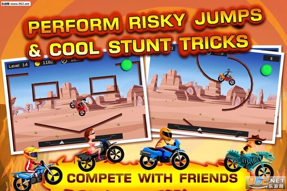 非常刺激带劲的一款摩托车特技驾驶类闯关手游,超多精彩关卡等你来挑战,驾驶各种各样的摩托车开启自己的特技驾驶之路,尽情享受各种各样的刺激冒险,完成一个又一个的冒险挑战,享受肾上腺素飙升的快感。