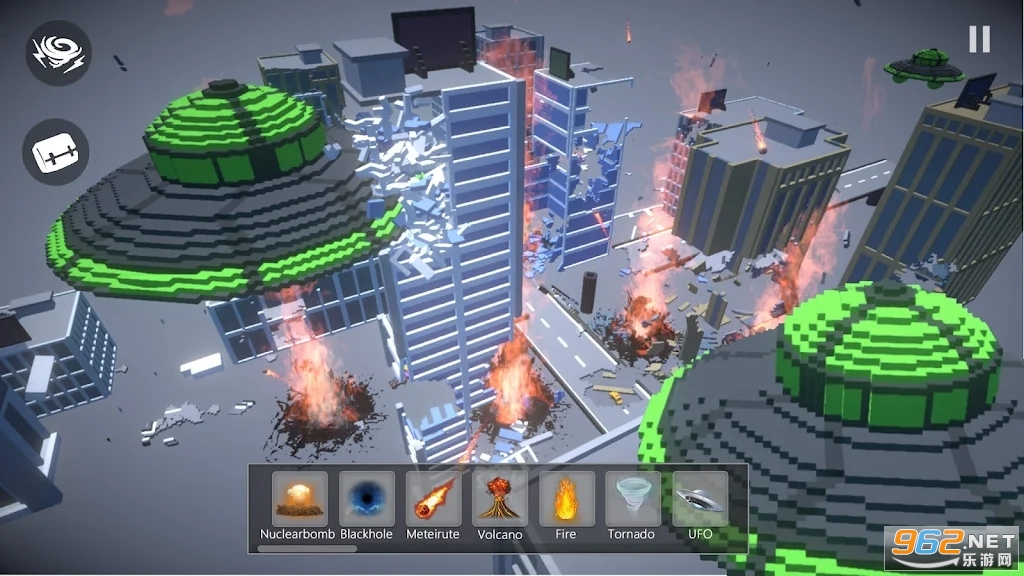 多种破坏方式:游戏提供了多种不同的破坏方式,如龙卷风、沙尘暴、黑洞、海啸、僵尸末日、核爆炸等等,让玩家可以更加自由地进行破坏。