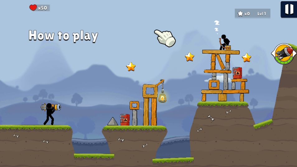 吊杆火箭筒(Boom Stick)是一款玩法模式新颖,画风独特的游戏。整个游戏过程轻松有趣,可以带给玩家不一样的游戏乐趣,以火柴人为主角的射击闯关类游戏,喜欢这款游戏的玩家可以来下载体验哦。