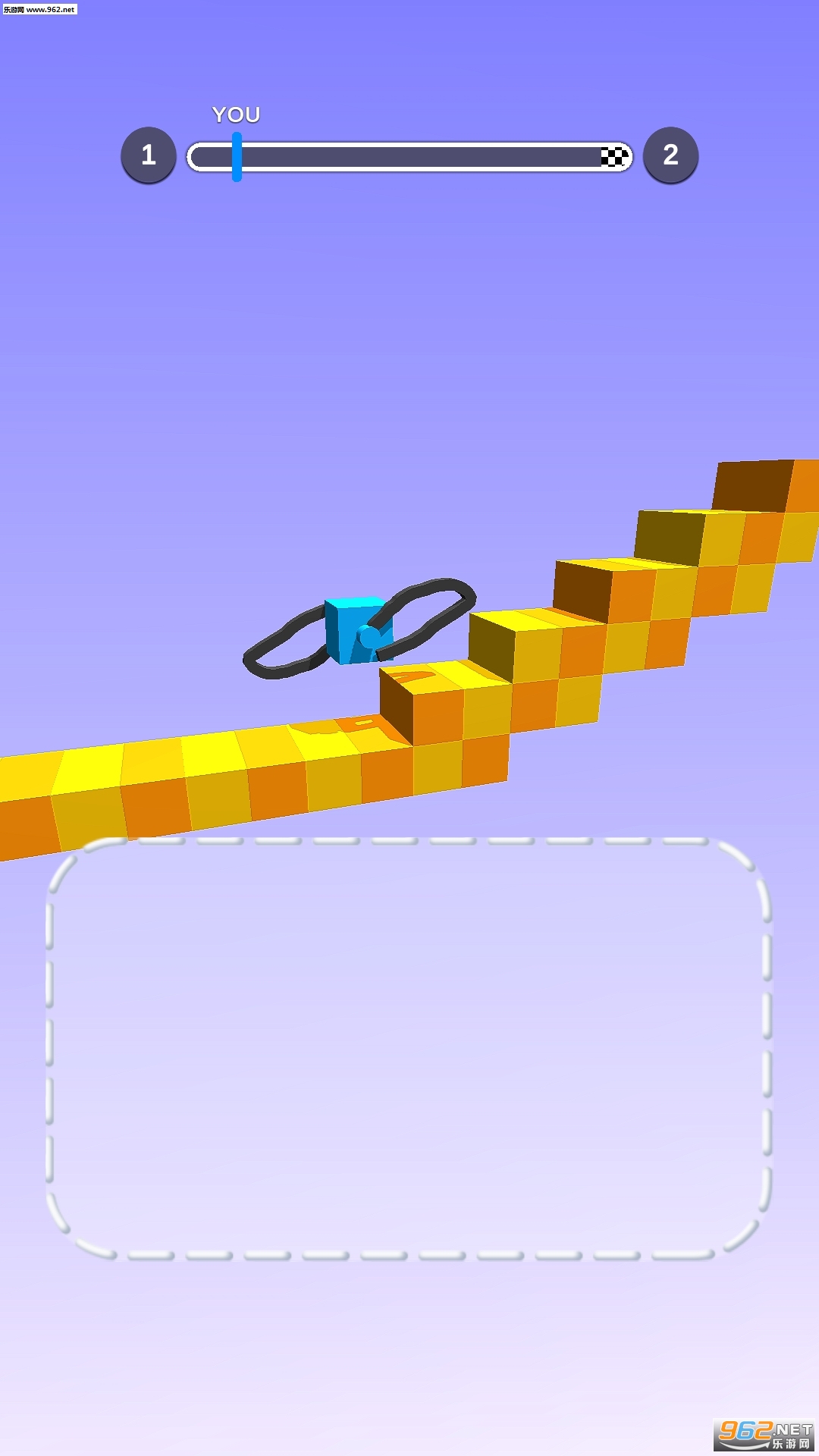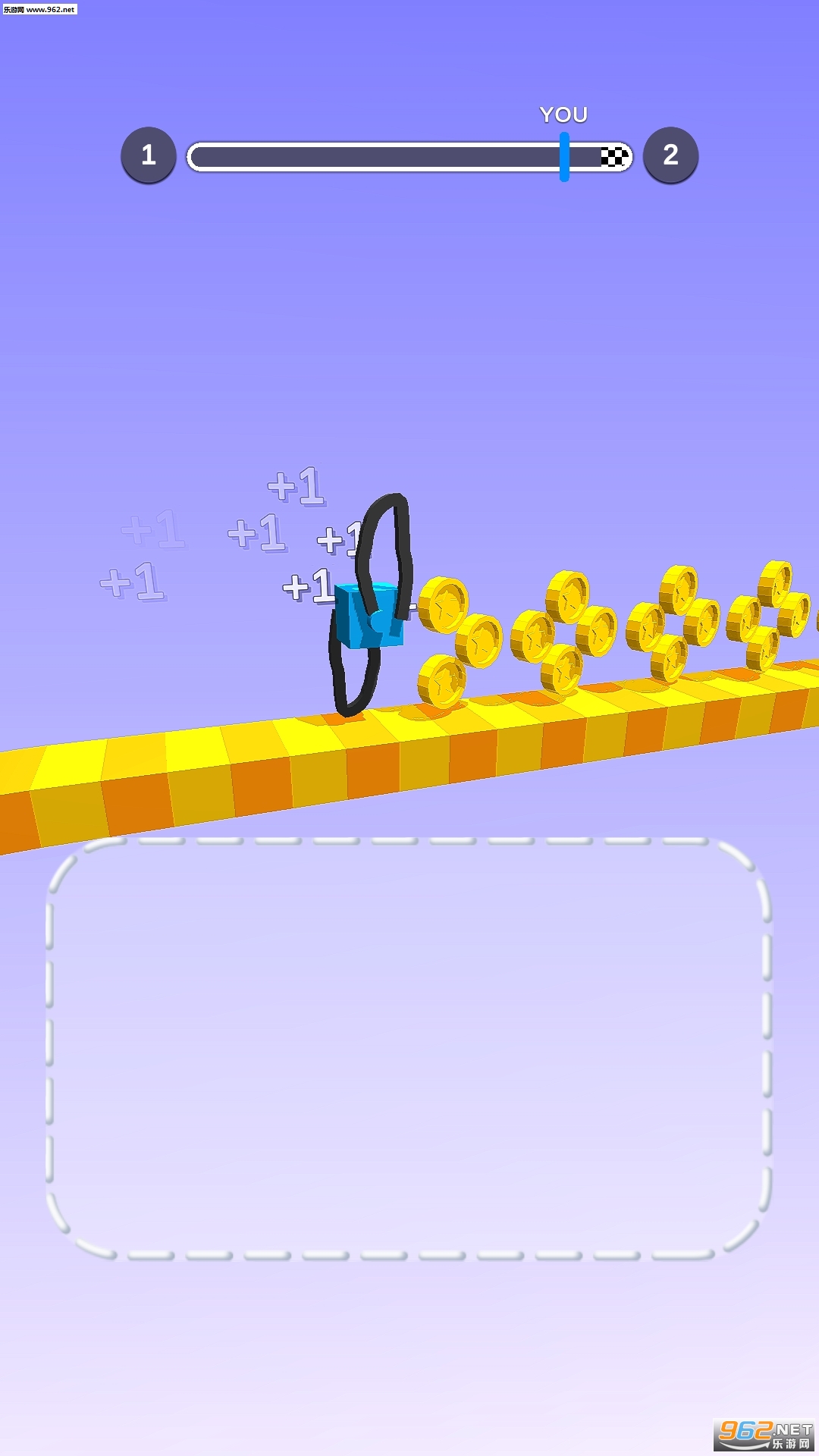 1、在游戏中将会有很多的道路要去前进进行奔跑,在屏幕的上面会有着一个进度条;