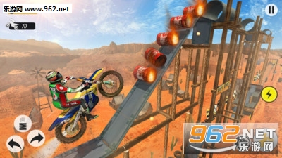 《沙漠自行车特技大师》是一款十分有趣的摩托车特技竞速类游戏,游戏中我们将驾驶自己的摩托车在这里开始一场有趣的特技表演赛,我们需要在狭窄的通路上进行竞速赛,这里充斥着各种机关和陷阱,稍不留神就会摔到下面去,海量关卡,多种刺激紧张的游戏玩法尽在其中,还等什么,快来游戏中亲自感受一下这种有趣刺激的摩托车特技表演吧!