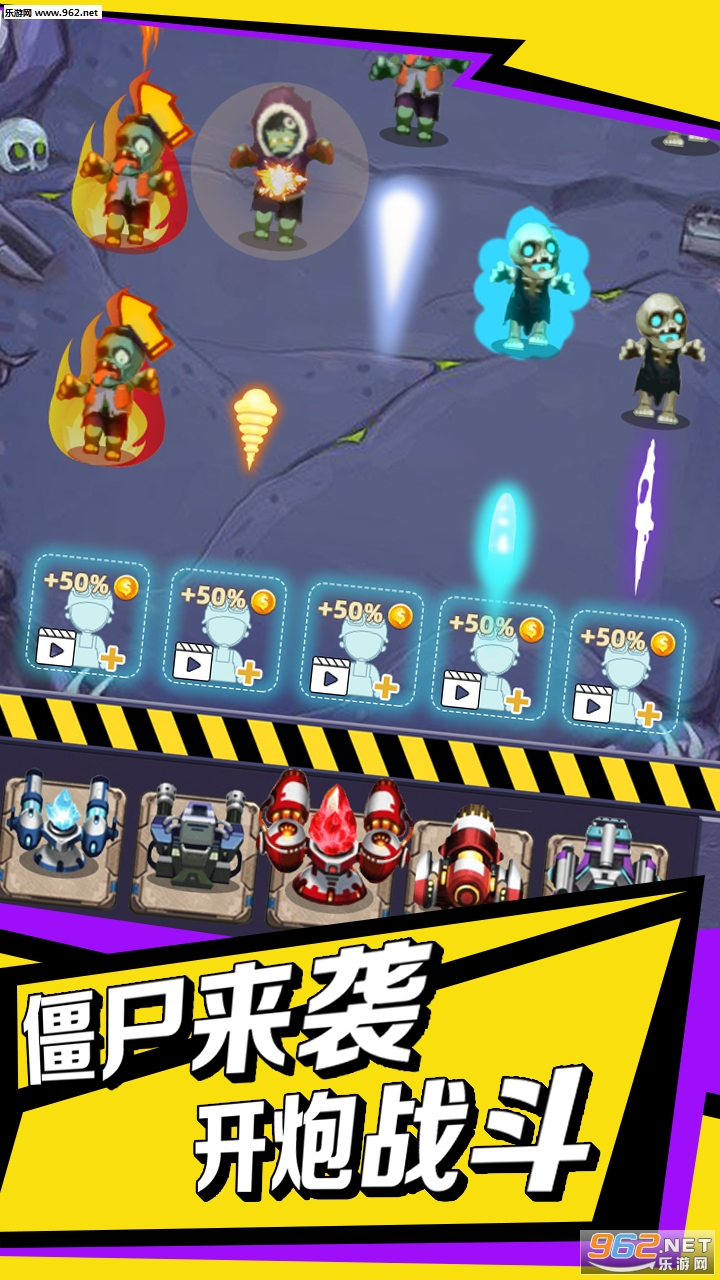 《爆打小僵尸》是一款卡通风格的放置防守游戏,游戏中玩家将架设炮台来对僵尸的进攻进行防御,游戏的操作简单容易上手,多种不同的炮台搭配,同时也有不同类型的僵尸发起进攻,还在等什么呢?一起来暴打僵尸吧!