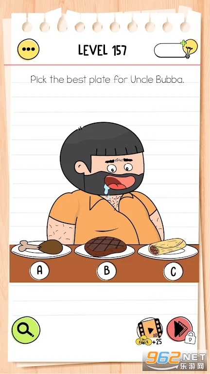 Brain Test 4 适合正在寻找具有挑战性的棘手难题来解决的脑力测试老手。如果您是真正让您思考的免费脑力游戏的粉丝,那么这就是适合您的游戏。一切都不像看起来的那样,一切都可以欺骗您的大脑。但是游戏提供了一个强大的提示系统,可以在此过程中为您提供帮助。准备好迎接具有挑战性但又令人愉快且易于访问的体验。每个级别都是一个脑筋急转弯游戏竞技场,邀请您通过一系列脑力谜题来脑筋急转弯。看看这个游戏是否是一个简单的游戏!