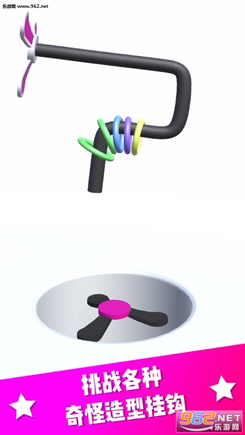 《快挂不住了游戏》是一款超级好玩的休闲闯关类游戏,也是一款单手就可以玩的游戏,超解压!游戏英文名叫《n Hook Them》,非常魔性的玩法,在这里你将控制一个不规则的钩子,在这里灵活的翻转移动, 想办法将钩子上面的彩色圈圈完美的落入地上的洞中,超考验反应哦!
