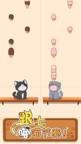 《猫咪喵喵》是一款节奏音乐游戏,玩家操控两只可爱猫咪随着音乐节奏接取下落的美食。在瞬间的音乐节奏中捕捉音乐的精彩时刻,以喜爱的音乐演奏萌动你灵魂的旋律。