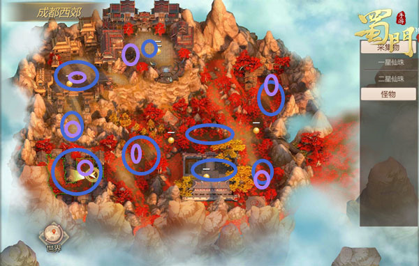 除了以上两个小技巧外,玩家们还需要熟悉掌握邪魔常出没的点,在确认当前地图有高品质的邪魔时精准快速的找到并获取经验,邪魔出没在云云灵山、成都西郊、天化村三个地图中,具体出没地点如下