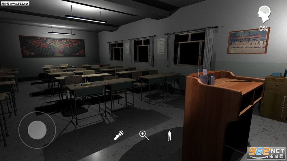 1、画面设置精美清晰,以暗黑色系为主要背景色,彰显出游戏恐怖的紧张氛围,让你有身临其境的感受;