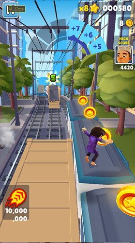 基础操作沿用经典手势:左右滑动切换轨道,上滑跳跃,下滑翻滚。空中亦可微调方向,提升躲避灵活性。进阶玩家可掌握组合跳滚”障碍双跳”火车接力”等技巧,在复杂地形中游刃有余,最大化金币收益。