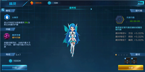 精灵需绑定契约者激活羁绊,解除契约将清零进度。当前版本中,羁绊等级仅由时间累积,加成效果则取决于星级。技能方面,六大类型分别对应闪避/命中、增伤/减伤、暴击/抗暴,其中闪避类技能实用性突出,命中类则在特定场景(如军团BOSS战)中表现优异。