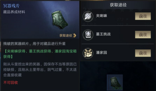 藏品是提升战力的核心装备,可通过升星”与注灵”双重路径强化: 升星使用冥器残片”,来源包括夹喇嘛副本、墓王挑战及潘家园金钻罐子; 升阶需冥器精华”,可通过金钻商城购买或剧情粽子掉落获取; 注灵则依赖注灵宝石”,来自潘家园或龙脉寻宝。 注灵不仅提升属性,还能激活套装特殊效果——集齐整套并达到指定注灵等级,即可解锁强力增益,极大增强副本与PVP表现。