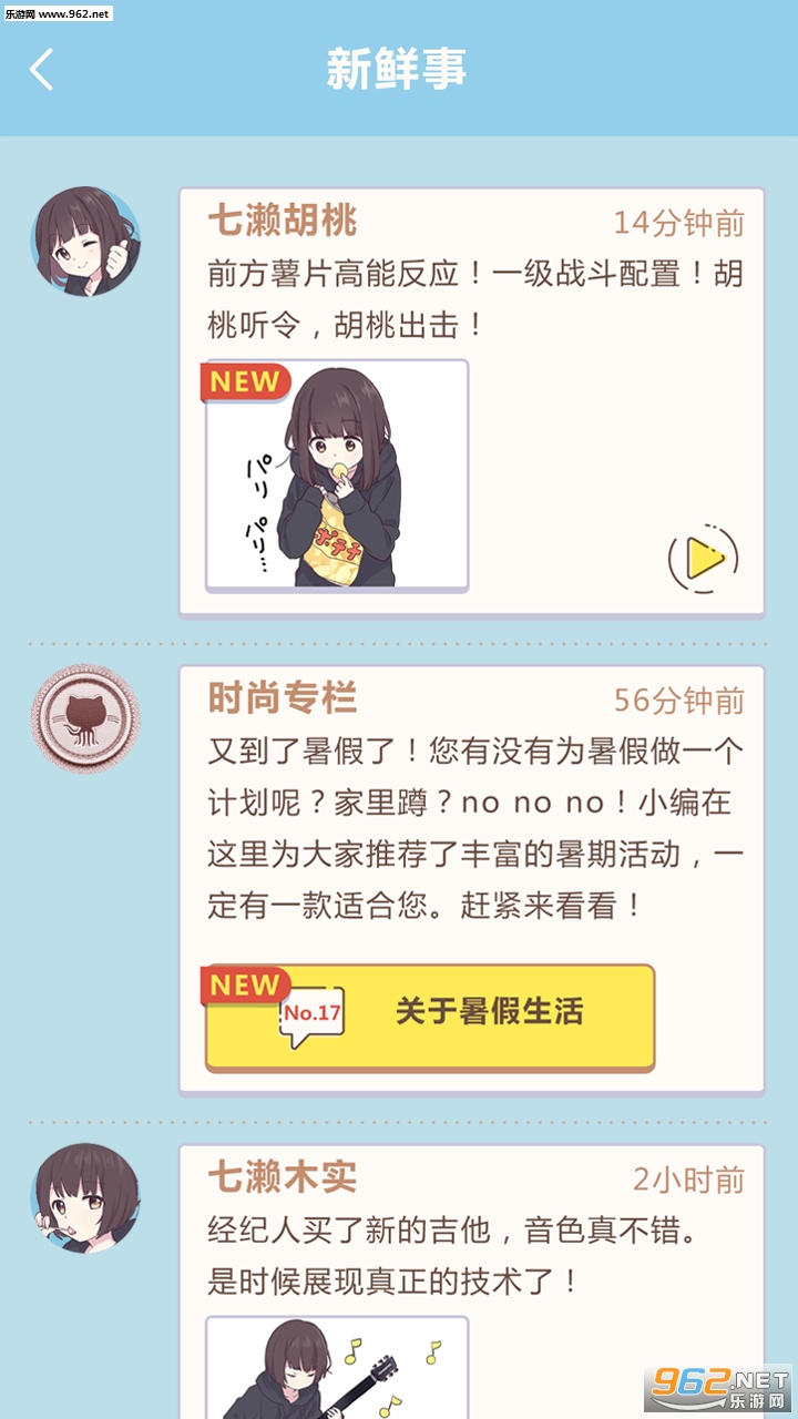 《胡桃日记表情包少女menhera安卓版》是由腾讯推出的一款动漫题材的放置休闲手游,游戏加入了动漫中众多的角色人物,朋友们可以和可爱的少女一起冒险,可以和对方聊天,在输入框中输入文字即可,可以做一些互动来提高与角色的亲密度,亲密度越高越好。
