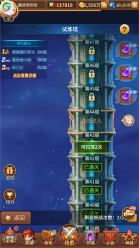 试练塔:16级开启,每日3次免费扫荡,稳定产出经验,推荐指数★★★★☆。
