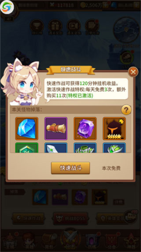 快速作战:在出击界面直接领取2小时挂机收益,效率极高,推荐指数★★★★★。